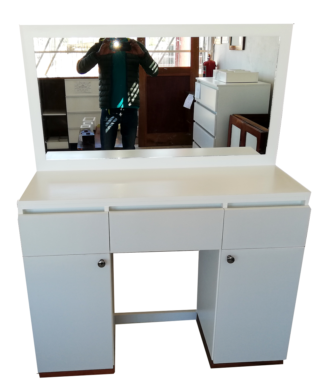 • Penteadeira com espelho em madeira melamina Cinza e Branco